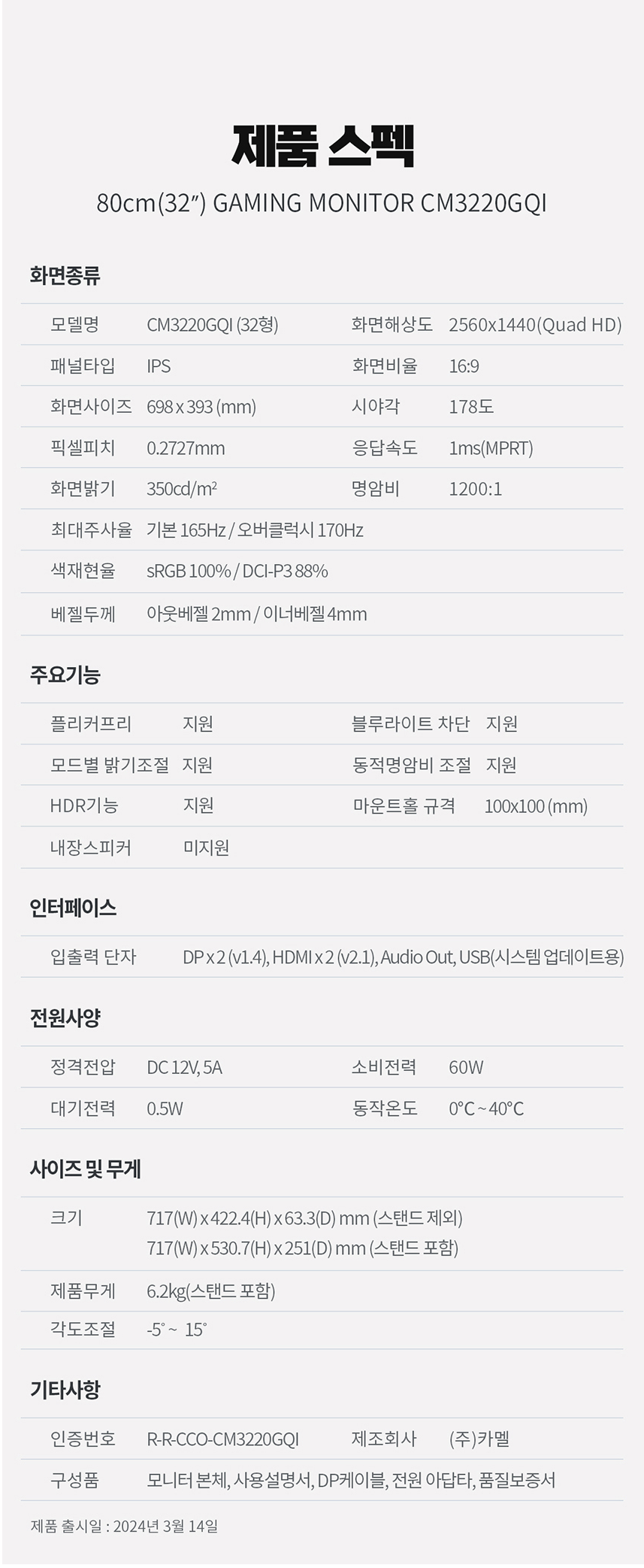 참고 : CM3220GQI 상품 상세정보(다나와) https://prod.danawa.com/info/?pcode=41826902&keyword=CM3220GQI&cate=112757#bookmark_product_information