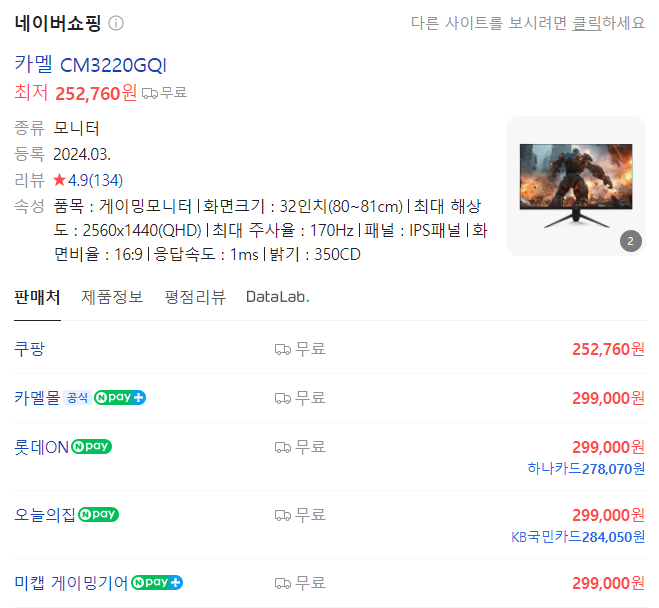 8년만의 모니터 교체, 카멜 32인치 IPS QHD 170hz 모니터 CM3220GQI