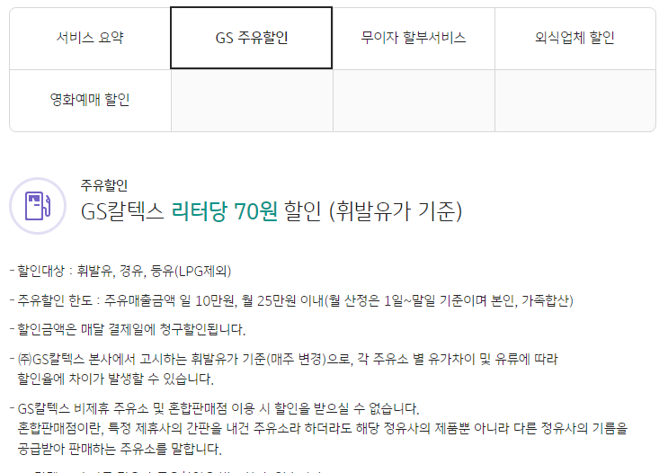 | GS칼텍스 주유소 청구할인 (휘발유, 경유, 등유) * LPG는 제외 |