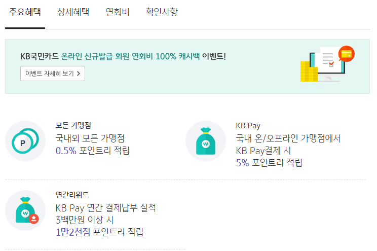 아래는 KB카드 홈페이지에서 가져온 상품 설명입니다.