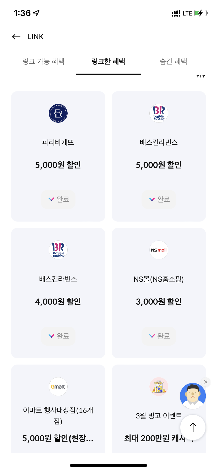 삼성카드는 LINK 라고 해서, 이런 저런 혜택을 넣어줍니다.