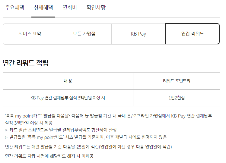 | 연간 300만원 이상 결제납부 시 | 12,000점 | KB Pay 결제만 가능, 해외이용 등 불가 |